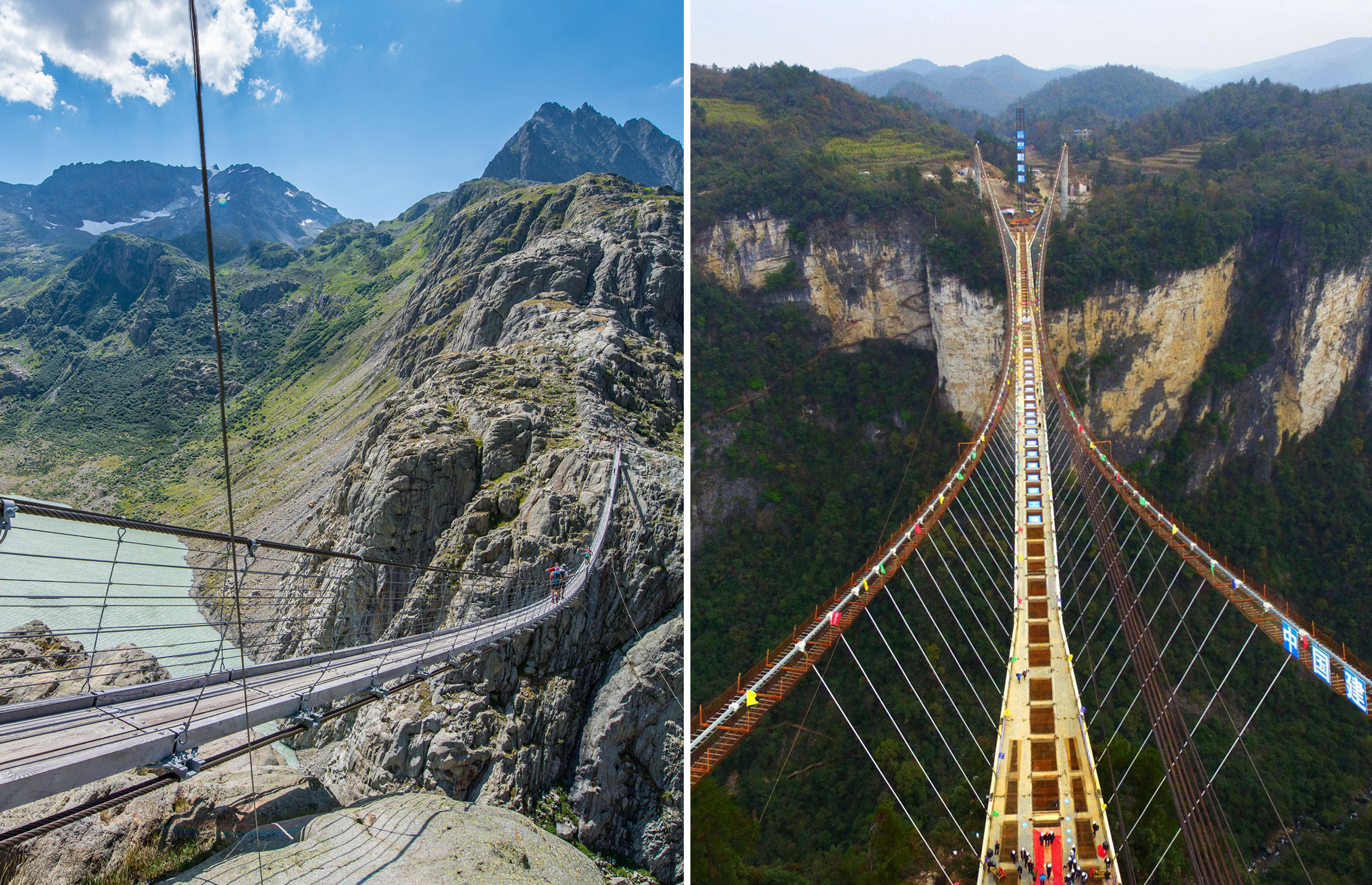 Conhecida como ponte dos homens bravos, ela está localizada na Fuxishan Tourism Resort na província de Henan. Tem 430 metros de comprimento, 6 metros de largura e 300 metros de altura